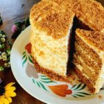 Multi-layered honey cakes are a tradition of Slavic countries such as Ukraine and Russia. Family traditions over the years have created numerous versions of this recipe, so there is no one traditional recipe. Ukrainian honey cake is called Medivnyk, while Russian honey cake is called Medovik. A classic honey cake has many thin layers, with a sour cream or cream cheese based frosting that soaks into the cake like a dulce de leche, creating a deliciously moist cake. The honey cake layers are best served after resting for a while, so that the moisture can be better absorbed into the cake. An authentic Ukrainian cake is made using real honey, giving it a unique and delightful flavor.